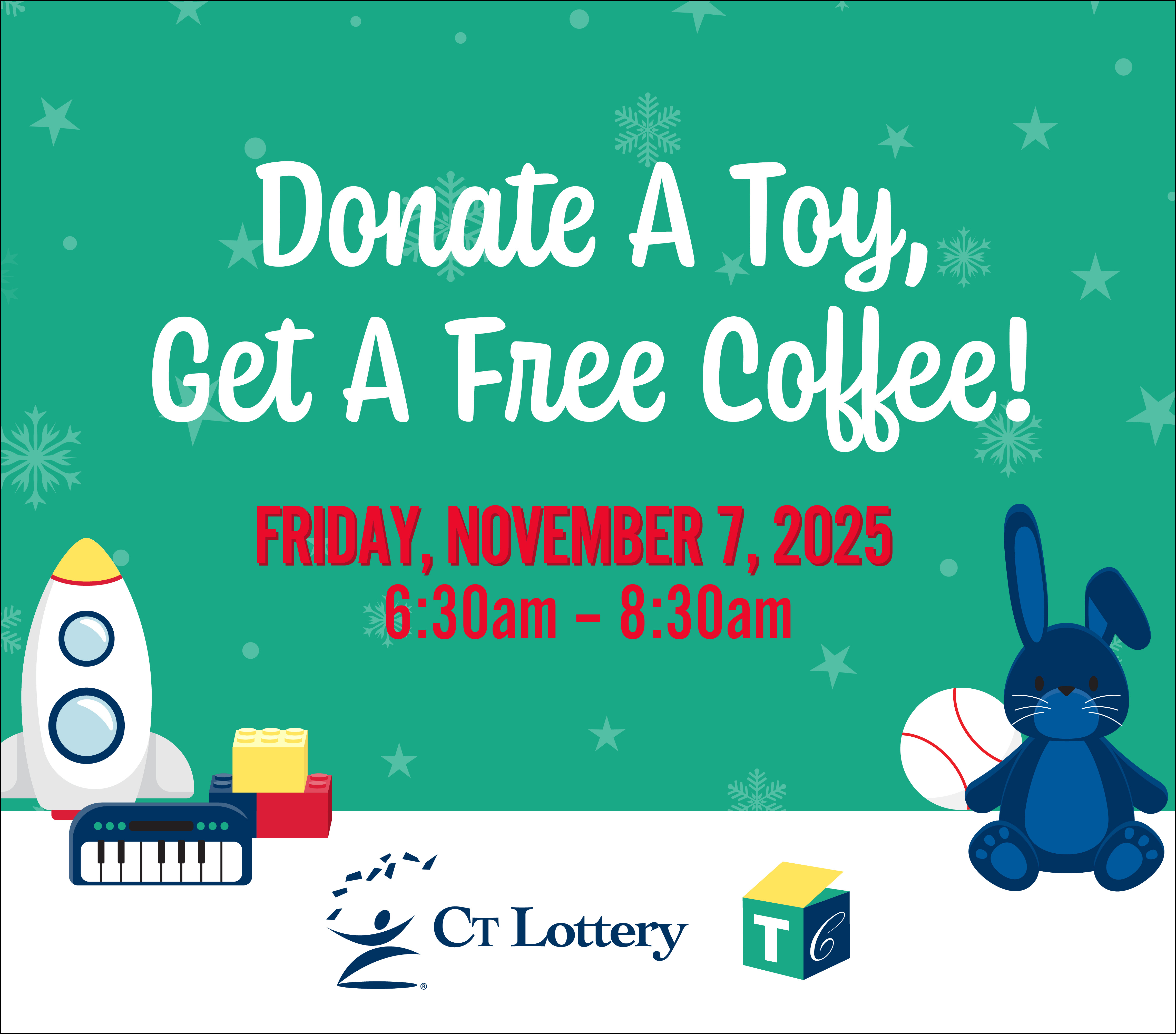 CT Lottery promotional items will be distributed on a first come, first served basis while supplies last. No purchase or donation required to receive CT Lottery promotional item(s). Donation required to receive free medium hot or iced coffee from Cumberland Farms at this location only between 6:30 am and 8:30 am on 11/7/25.
